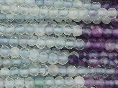 Auf einem Strang sind ~197 echte, facettierte Fluorit Steinperlen farblich geordnet aufgefädelt.